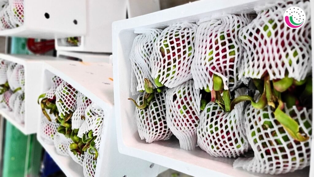 Dragon fruit packed in foam boxes for export by air